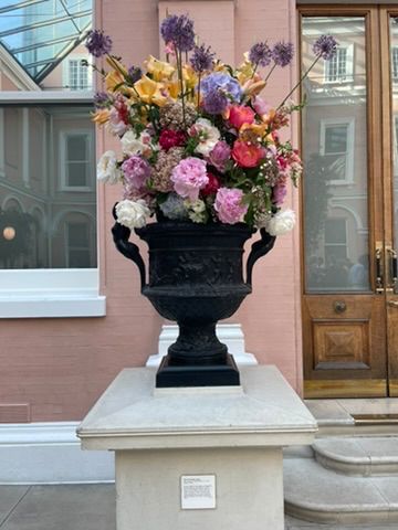 The evening began with a very welcome glass of bubbly in the museum’s elegant courtyard, followed by a leisurely stroll through the show itself – bubbles in hand!