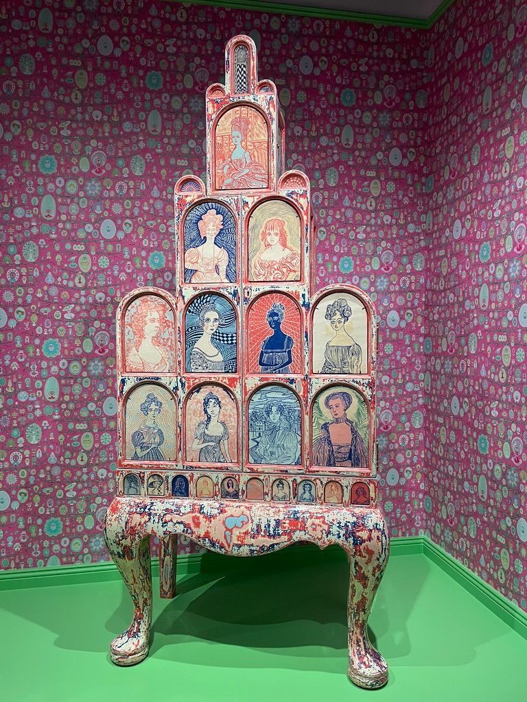The exhibition is a jolly jape – it includes ceramics, tapestries, furniture, wallpaper and even some very unusual AI-generated images – many inspired by the Wallace Collection’s in-house historic masterpieces.